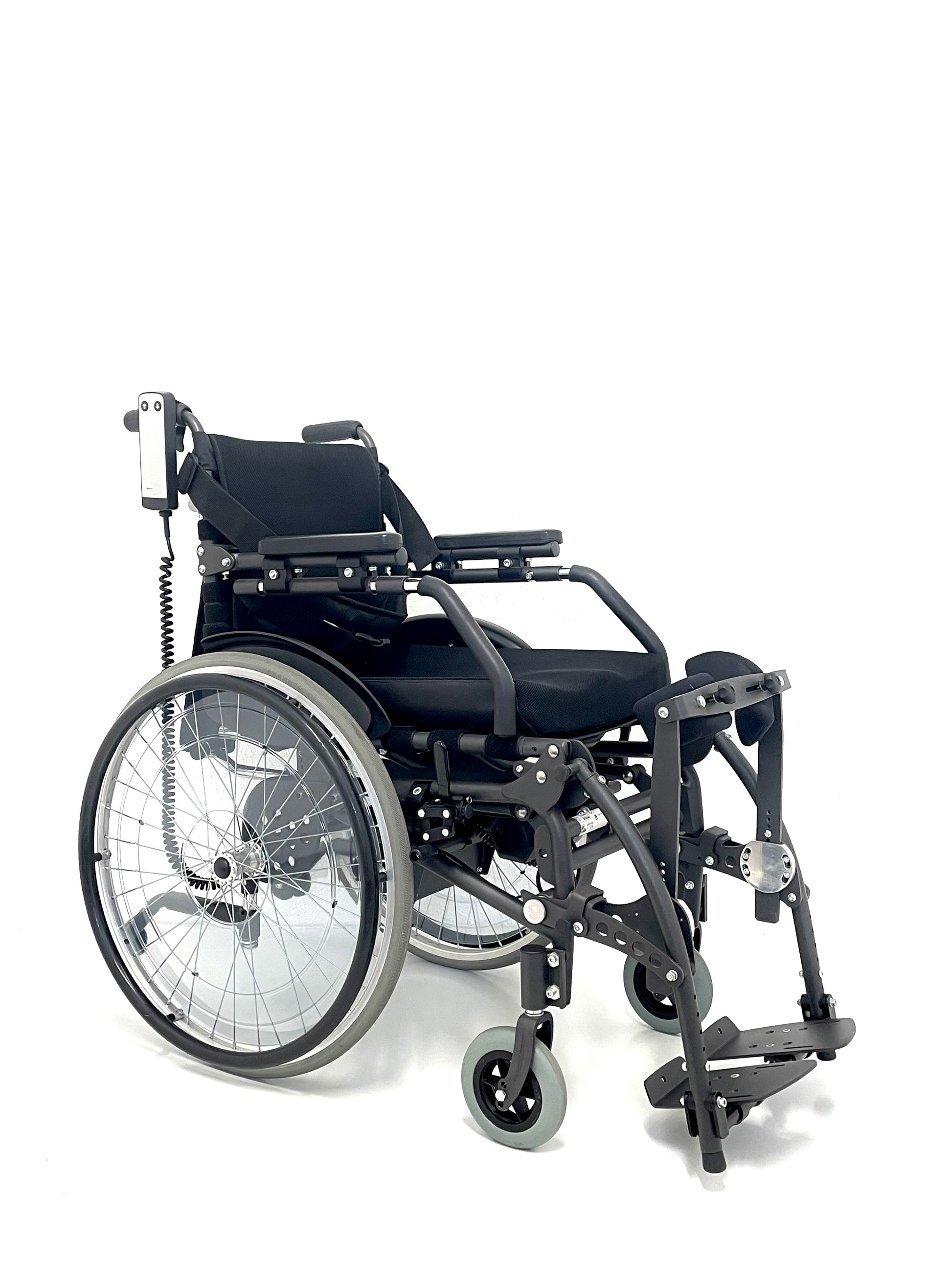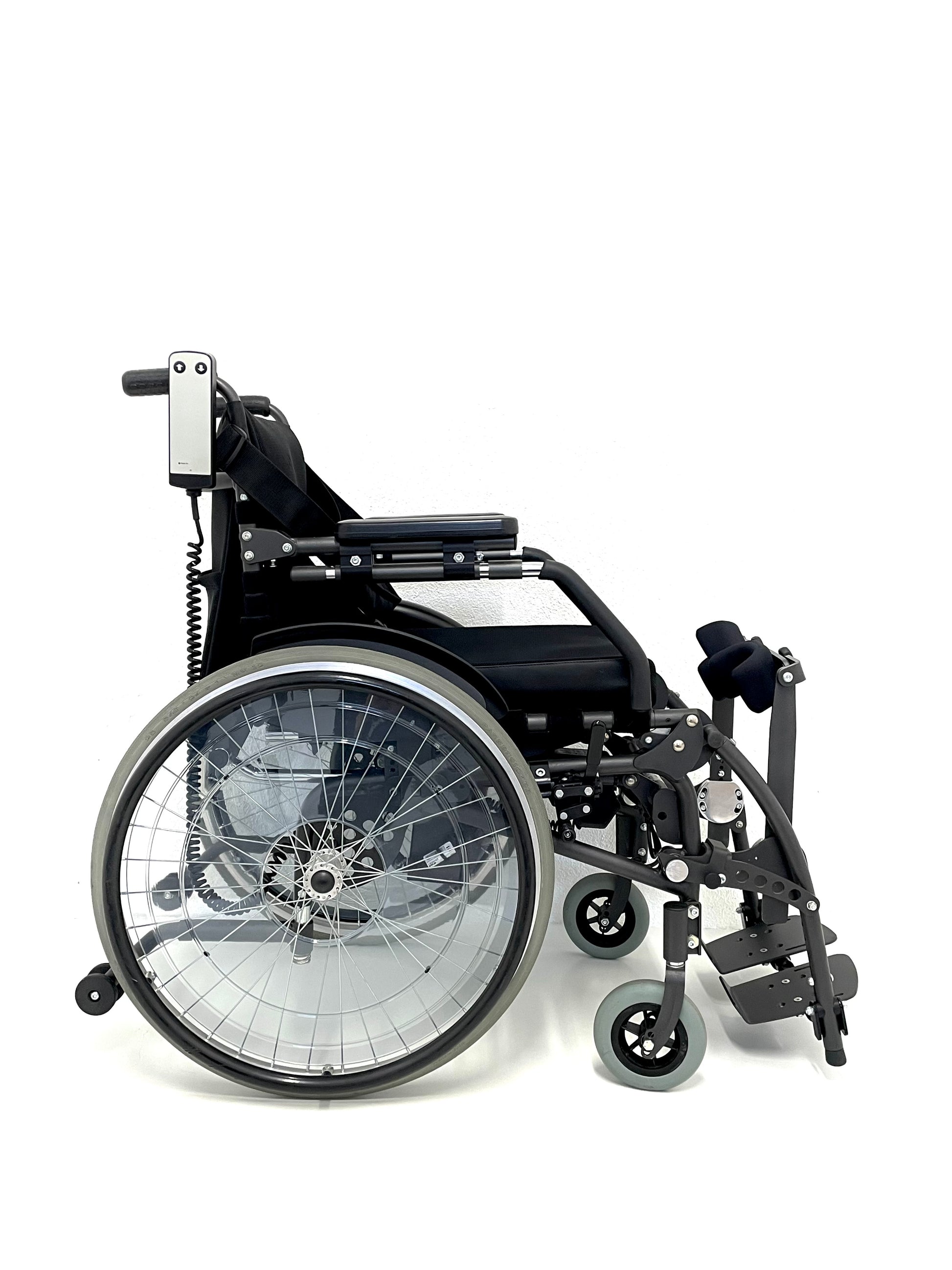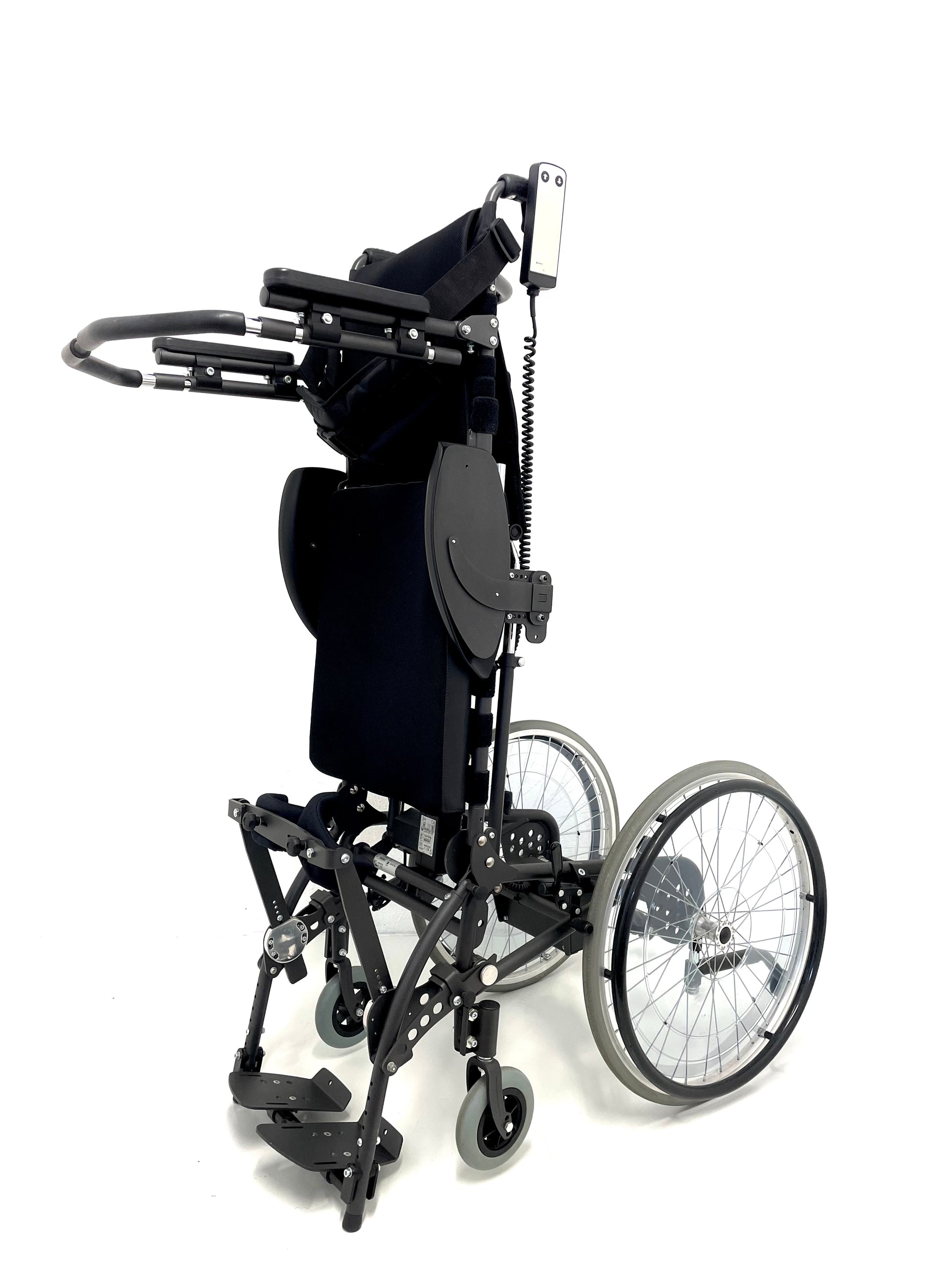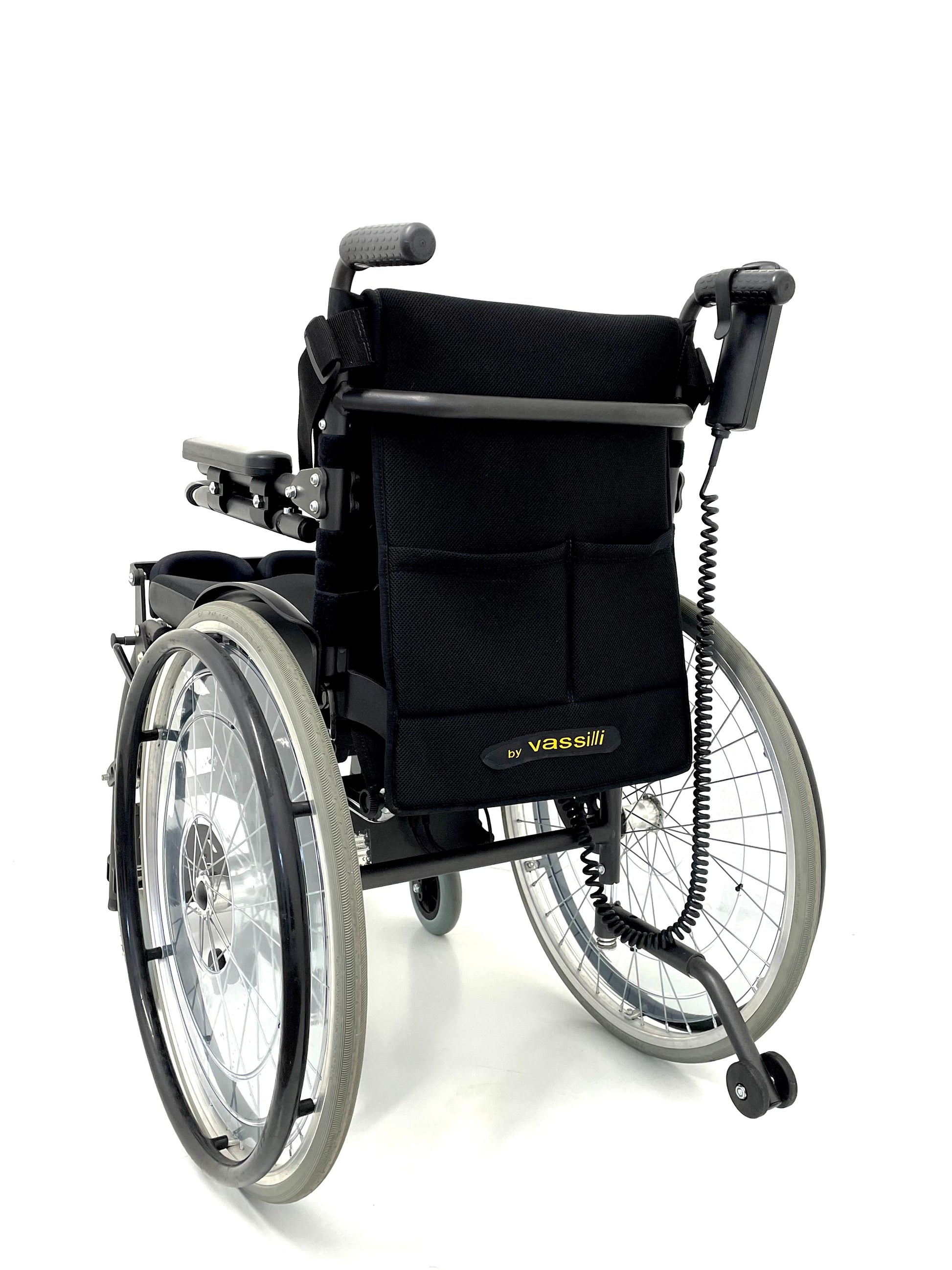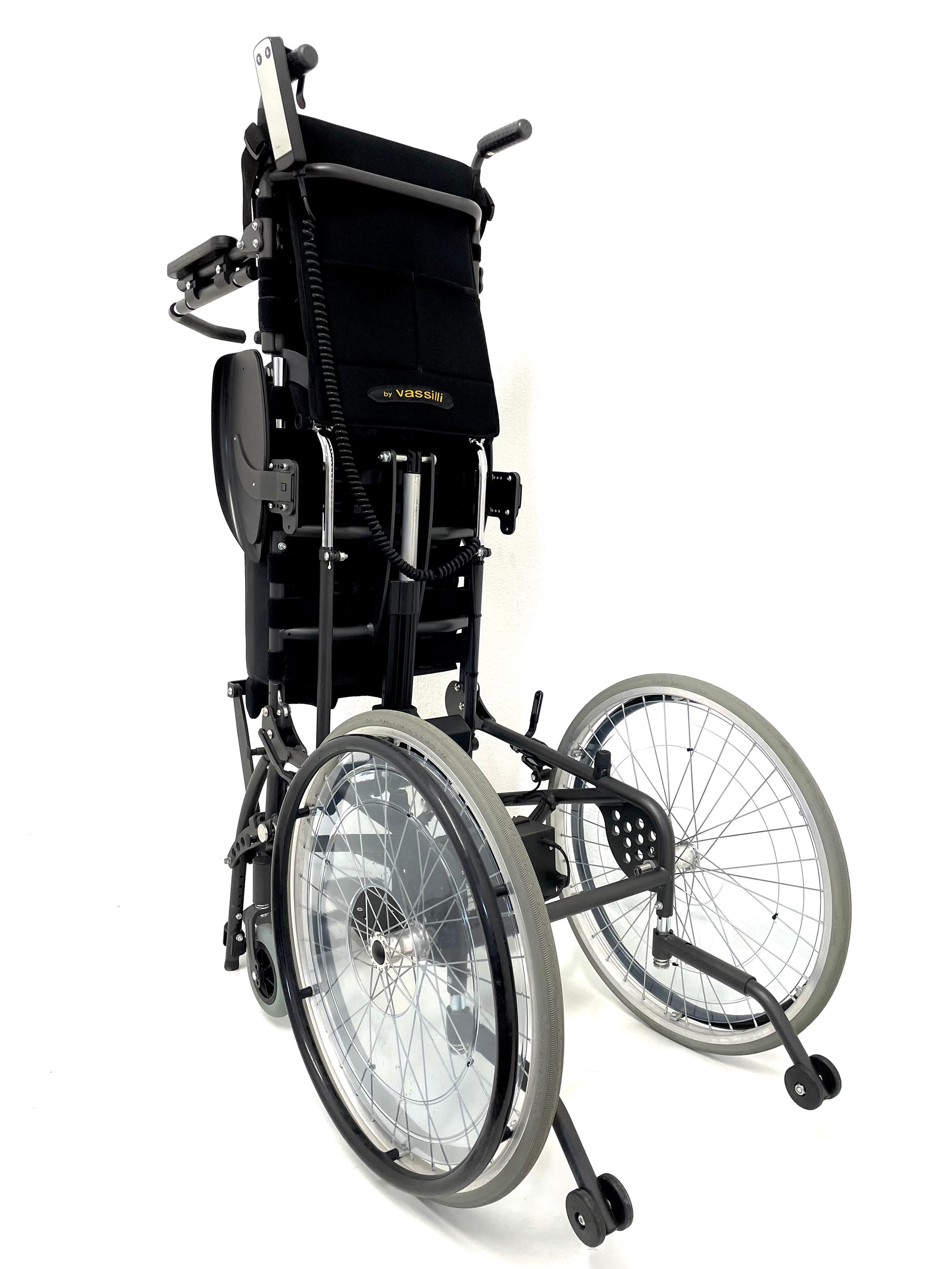 Der Stehrollstuhl von Vassilli ist belastbar bis zu 120kg. Mit einer Sitztiefe von 50cm und einer Sitzhöhe vom Boden von 57cm bietet er maximalen Komfort. Durch die klappbare Armlehne und die abnehmbaren Räder ist er auch unterwegs leicht zu handhaben. Die Kippsicherung und der leistungsstarke 50Watt Motor machen ihn zu einem sicheren und zuverlässigen Begleiter.